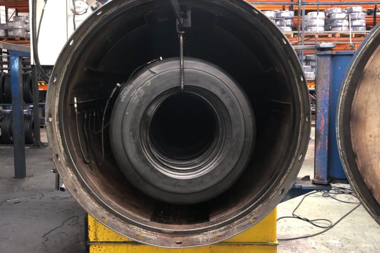 A etapa de Vulcanização tem por objetivo garantir a total adesão da nova Banda de Rodagem ao pneu que está sendo reformado.
